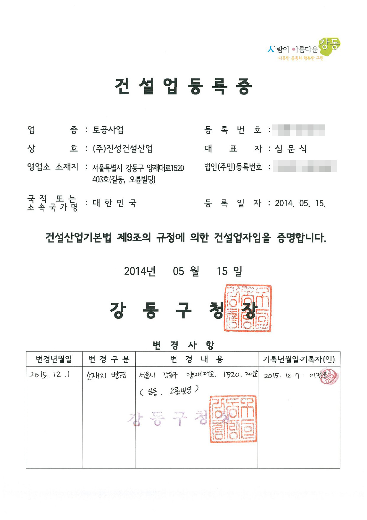 °Ç¼³¾÷µî·ÏÁõ(Åä°ø»ç)